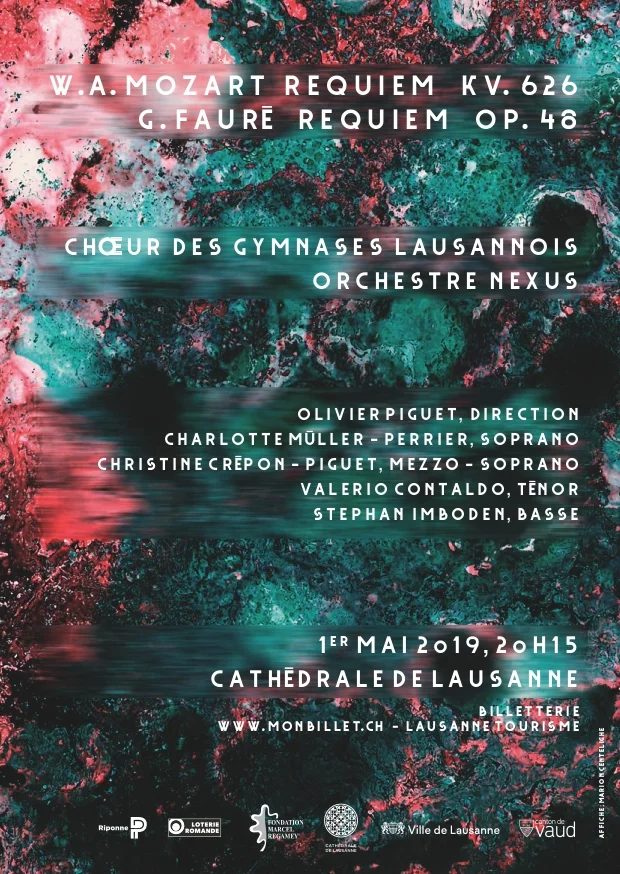 “Le texte de la messe des défunts, traité par Mozart (1756–1791) et Fauré (1845–1924) est quasi le même. Toutefois, l’époque, les circonstances de vie et la situation géographique et esthétique - Vienne et Paris - diffèrent grandement. Mozart reçoit cette commande de Requiem qu’il ne pourra pas complètement honorer à cause de sa mort prématurée, alors que Fauré songe à composer le sien à trente et un ans « pour rien »…