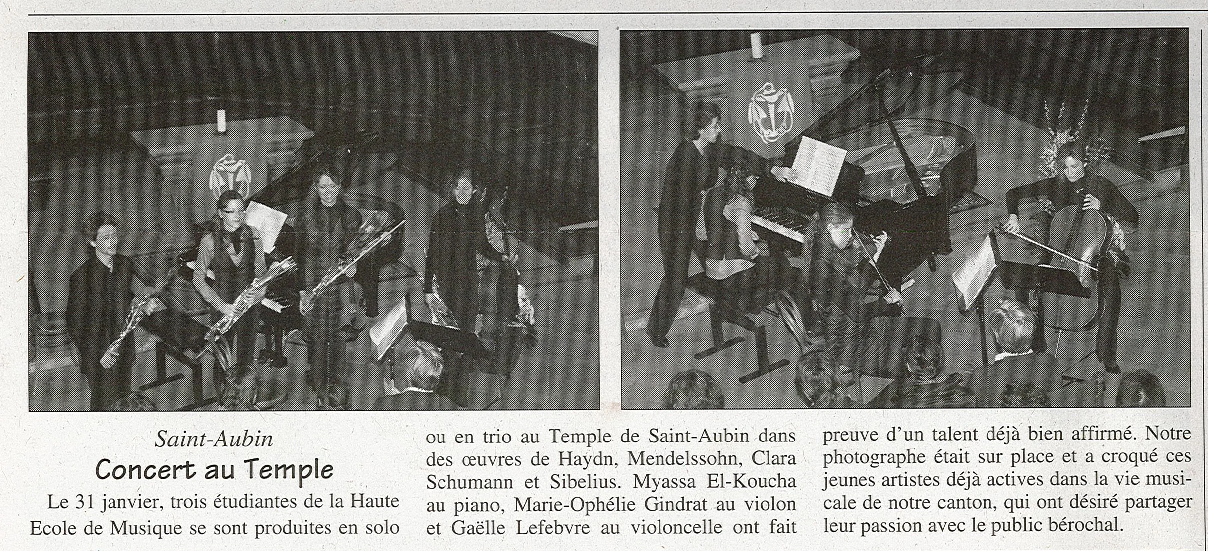 Article dans la Feuille d'Avis de la Béroche, janvier 2010