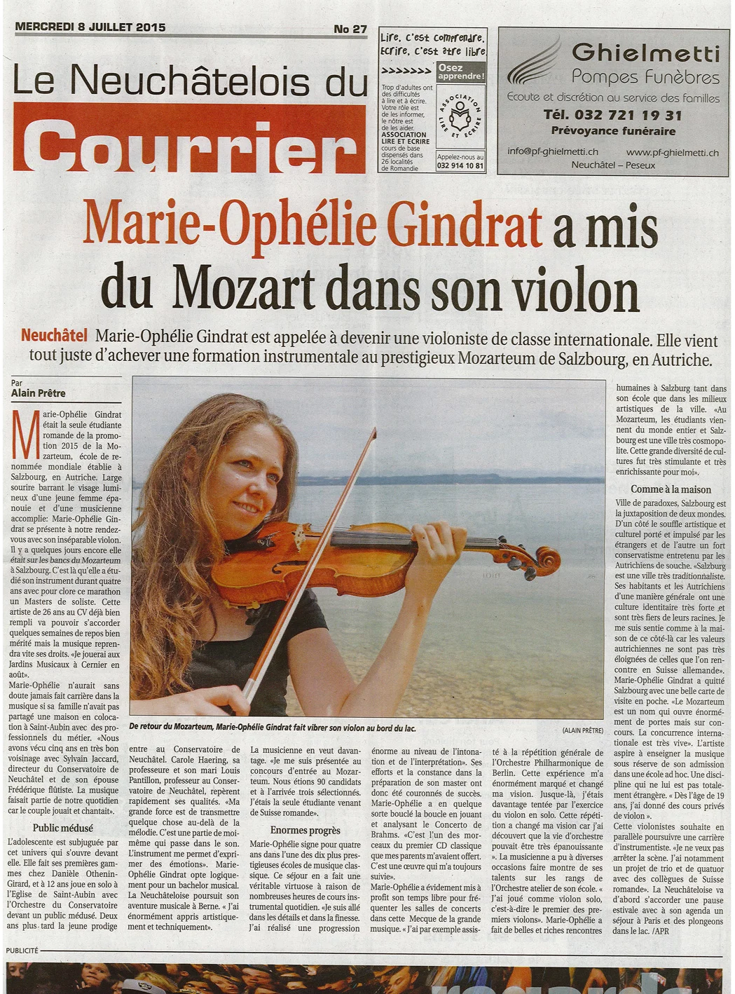 Article dans le Courrier Neuchâtelois, juillet 2015